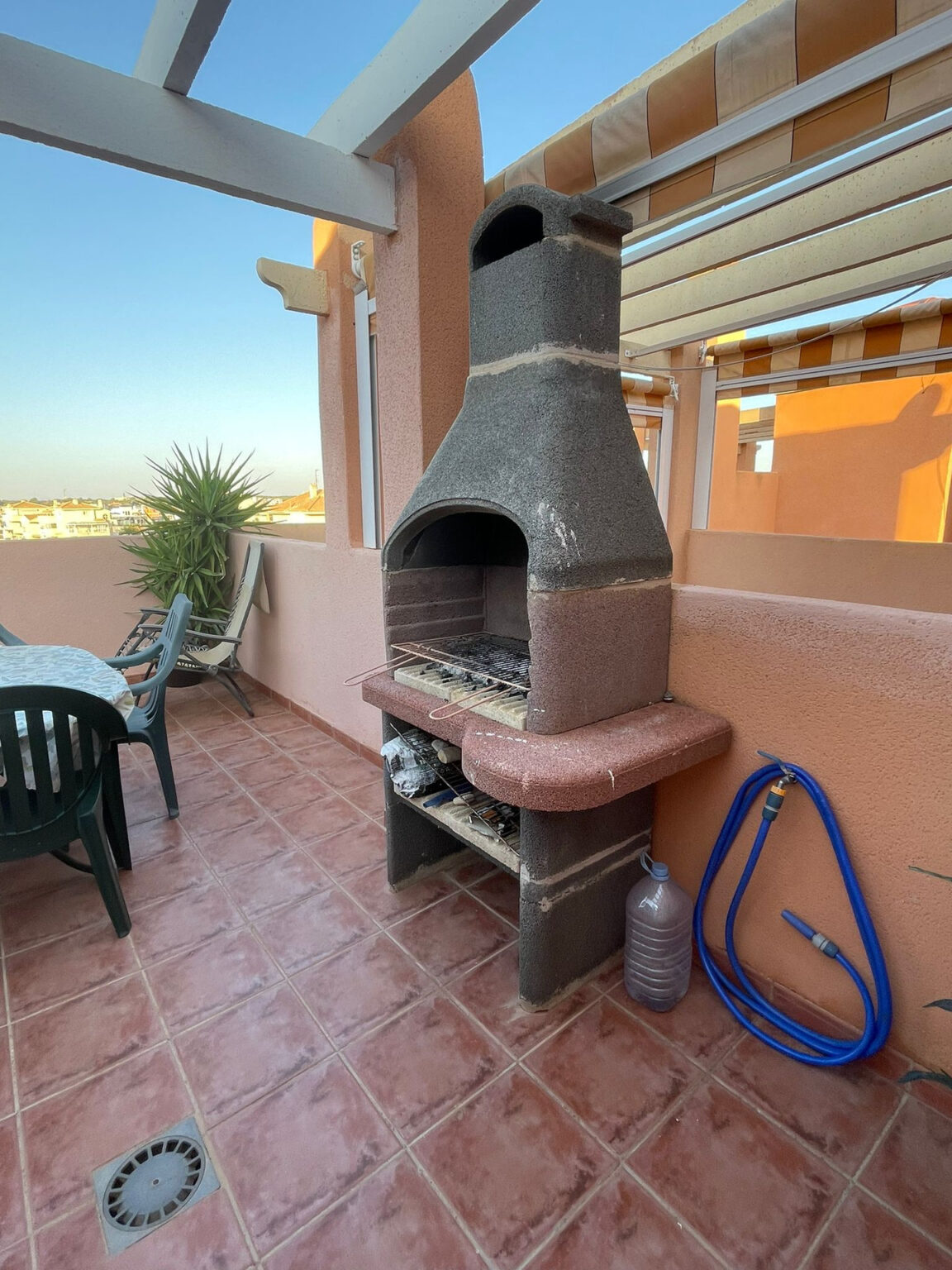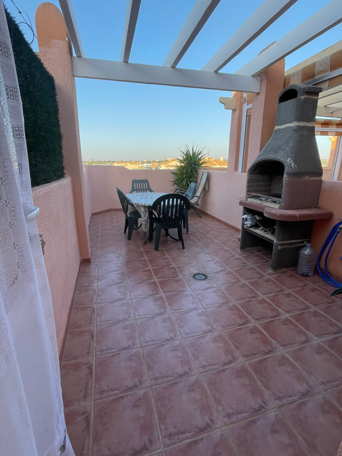 Cabo Roig egyik legjobb elhelyezkedésű épületében, a Calle Mar 2 cím alatt található ez a teljesen felújított, modern kialakítású apartman, amely a harmadik emeleten helyezkedik el. A lakás különlegessége a két tengerre néző szolárium terasz, amelyek kiváló lehetőséget nyújtanak napozásra, pihenésre vagy akár közös grillpartikra, hiszen saját sütögető rész is kialakításra került.
