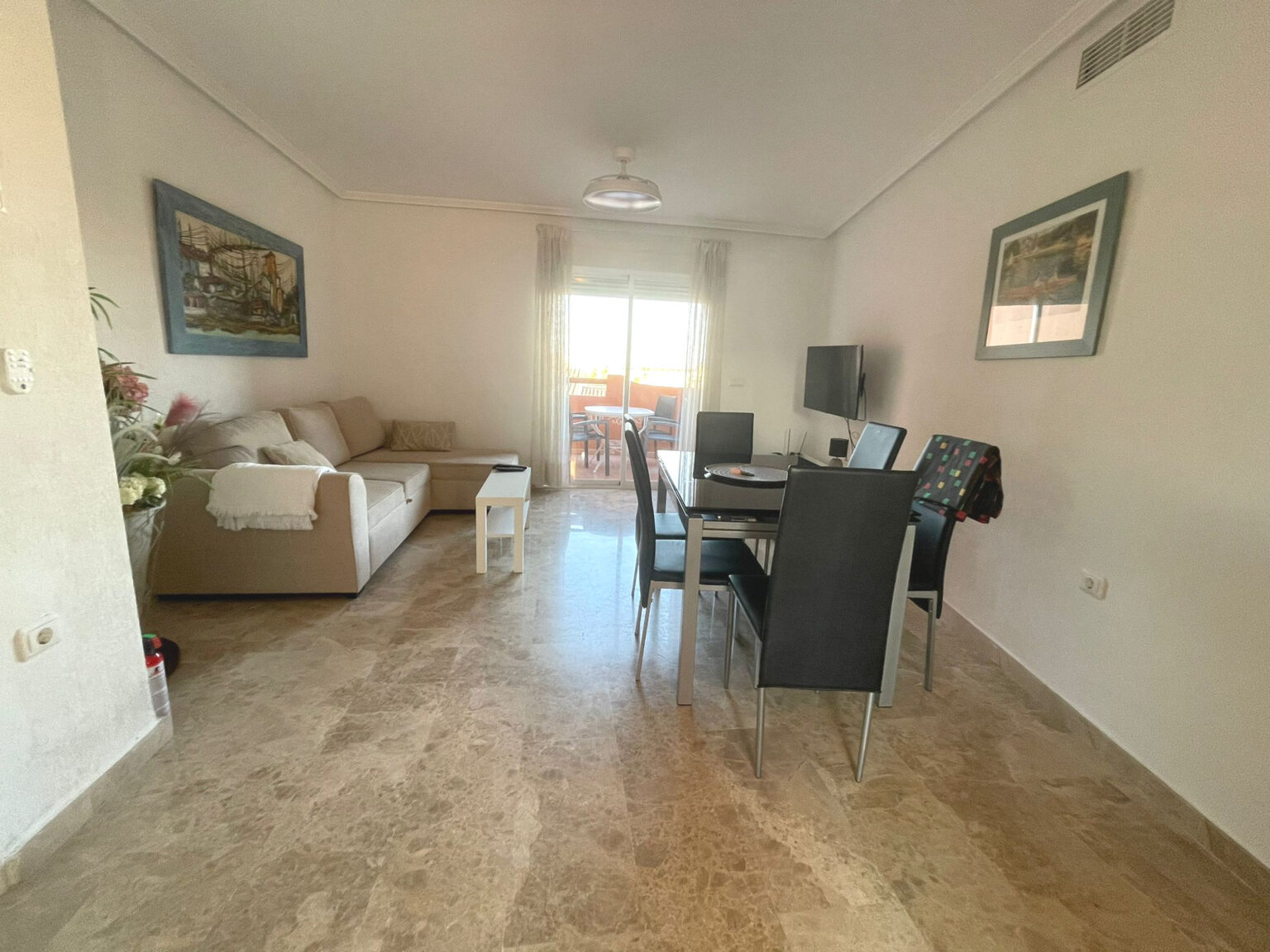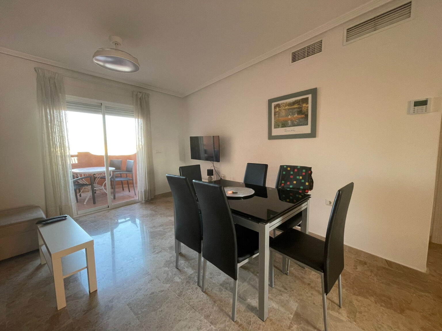 A frissen felújított apartman teljes felszereltséggel várja a vendégeket – ideális választás mind rövid, mind hosszabb tartózkodásra. A modern berendezésnek és a minőségi kialakításnak köszönhetően tökéletes kényelmet biztosít a családoknak, pároknak vagy a Cabo Roig-i tengerpart rajongóinak.