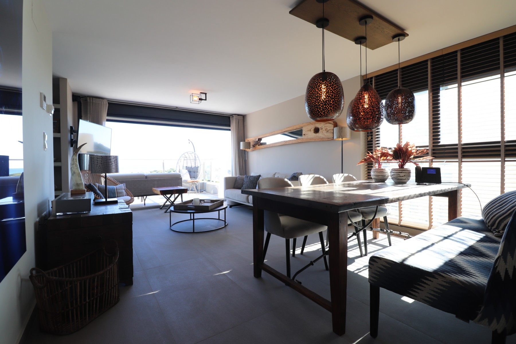This East Facing, Penthouse, Three Bedroom, Luxurious Apartment in Guardamar del Segura, is located in a highly sought-after area, just a 10-minute walk to a main chain supermarket, 15 minutes to the marina and beach, and a 5-minute drive to the town centre. Beautifully and tastefully presented, this 109m2 apartment boasts modern living, being built in 2018, enjoying spectacular unspoilt views across the pine forest and dunes to the sea from the living area. Natural light streams through the wall-to-wall sliding glazed doors, which disappear seamlessly into the wall, creating a wonderful flow to the amazing terrace and chill-out area, ideal for taking in the stunning surroundings. The open-plan modern fitted kitchen is complemented by a utility room. There are three double bedrooms with fitted wardrobes, the master featuring an en suite, and a family shower room. A private solarium, accessed via the terrace, offers the ultimate in outdoor luxury with a private 2.5 x 1.8 heated pool, built-in BBQ, and kitchen area. From here, you can also enjoy serene views over the river. Additional features include a 25m2 basement parking space, ducted air conditioning, under floor heating throughout, CCTV in the block, video intercom, and a lift providing direct access to the apartment. The communal pool adds the finishing touch to this exceptional property.