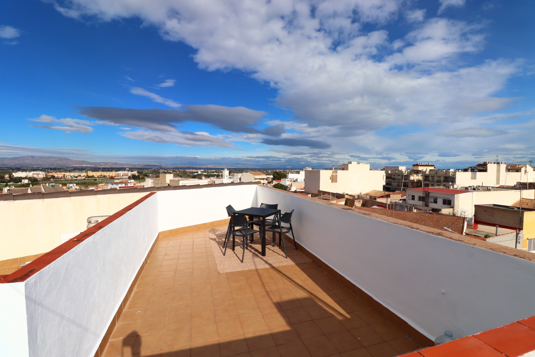 This Well Located, Two Bedroom, Penthouse Apartment in Benijofar, is located central to all amenities on offer, including café bars, fantastic array of restaurants, a new commercial centre, shops, school, medical centre, sports ground and pool, plus a lovely park with lake. Quesada is just a 5 minute drive away, La Marquesa golf course 5–10 minutes, and the beach can be reached in approximately 12 minutes. Situated on the second floor (top floor) of a small block with no lift, the property comprises a roomy, well fitted kitchen, a bright living area, and two double bedrooms, with the master bedroom offering built-in wardrobes. There is also a family bathroom. A standout feature is the private solarium, offering wonderful views across to the mountains — the perfect spot to enjoy the sunset. An ideal lock-up-and-leave holiday home in a fantastic, central location on the Costa Blanca South.